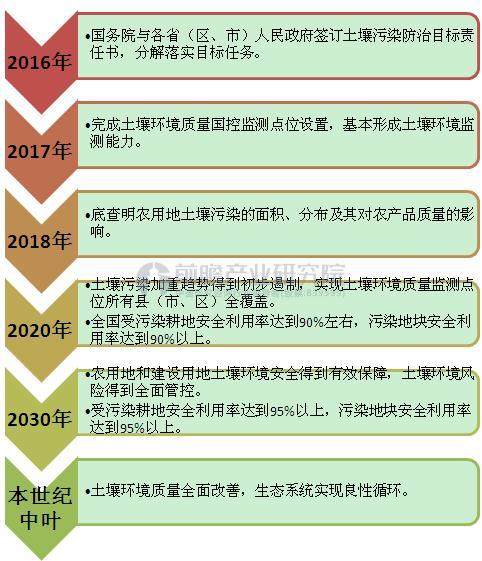 “土十條”對今后一個時期我國土壤污染防治工作做出了全面戰(zhàn)略部署,明確定下了未來兩個五年計劃的目標:到2020年,全國受污染耕地安全利用率達到90%左右,污染地塊安全利用率達到90%以上。到2030年,受污染耕地安全利用率達到95%以上,污染地塊安全利用率達到95%以上。